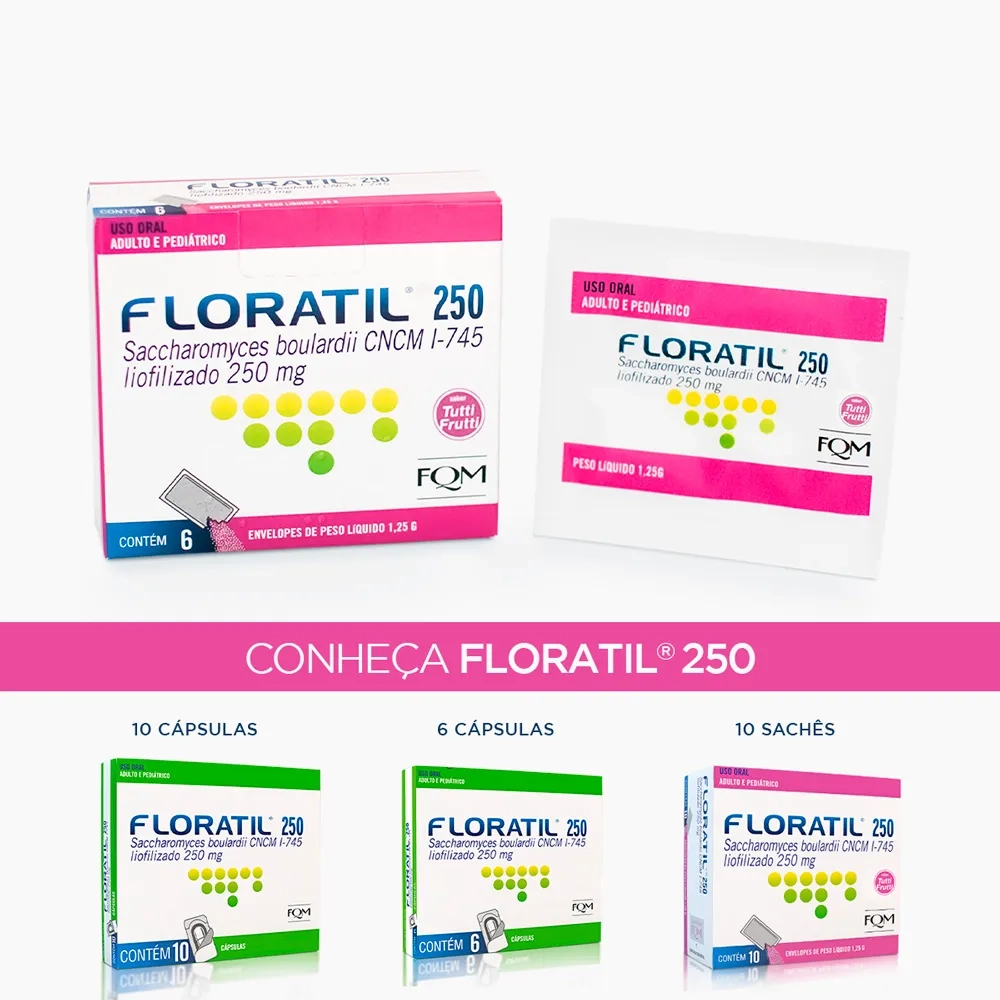 Floratil® 250mg Cápsulas é um medicamento probiótico que serve para tratar e prevenir a diarreia de diferentes causas, equilibrando a microbiota.