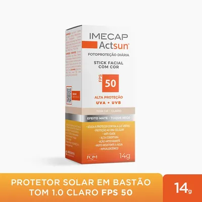 sol e pelo envelhecimento precoce. O Protetor Solar Facial em Bastão Imecap Actsun® Cor 1.0