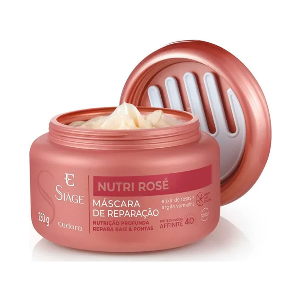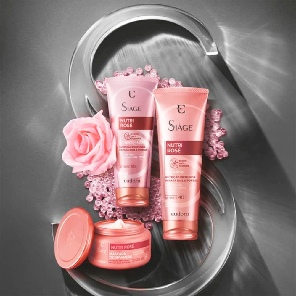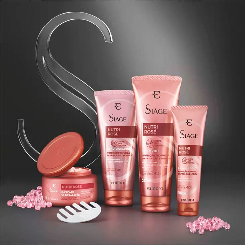 A Máscara de Reparação Capilar Siàge Nutri Rosé hidrata profundamente e repara as áreas fragilizadas dos fios por todo seu comprimento, além de devolver sua resistência natural, evitando que eles se quebrem facilmente. Proporciona cabelos com toque macio, mais resistentes e com brilho natural. A linha Siàge Nutri Rosé é enriquecida com um poderoso Elixir de Rosas, rico em vitaminas e antioxidantes que nutrem os fios e tem auto poder de reparação, combinado a natural Argila Vermelha que nutre os fios, promovendo equilíbrio ao couro cabeludo e reparação profunda da raiz as pontas. O Elixir de Rosas é um ativo poderoso obtido através da colheita de 30 mil pétalas de rosas que garante a reparação dos fios por inteiro. |