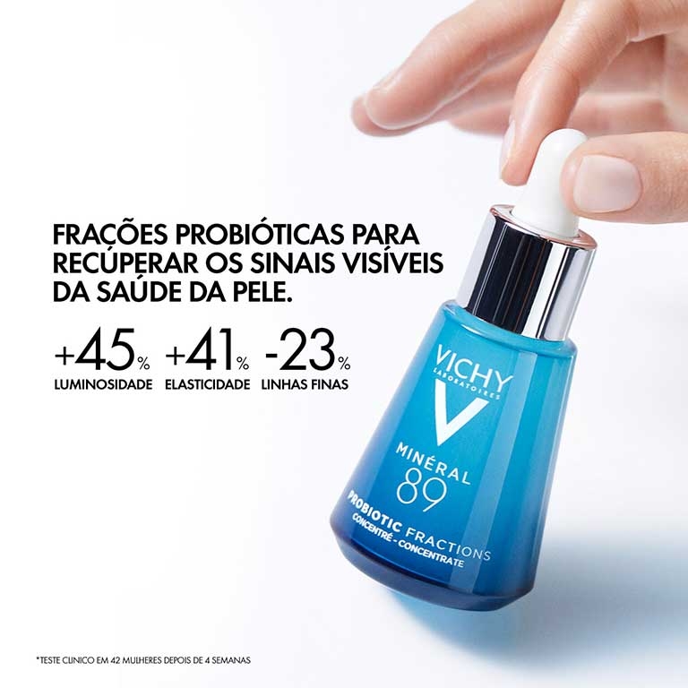 O Sérum Concentrado Restaurador e Reparador é o único composto por Frações Probióticas potencializadas pela Água Vulcânica de Vichy e 4% Niacinamida, que comprovadamente recupe os sinais visíveis da saúde da pele. |